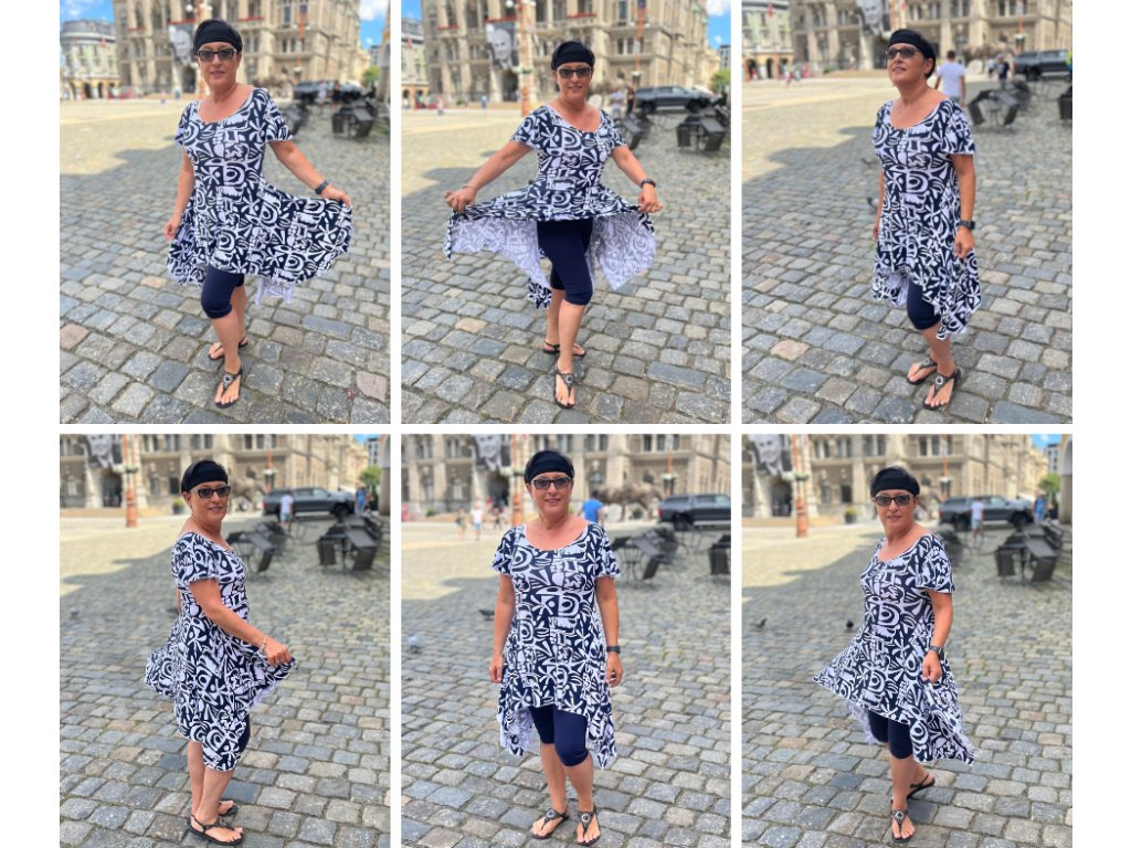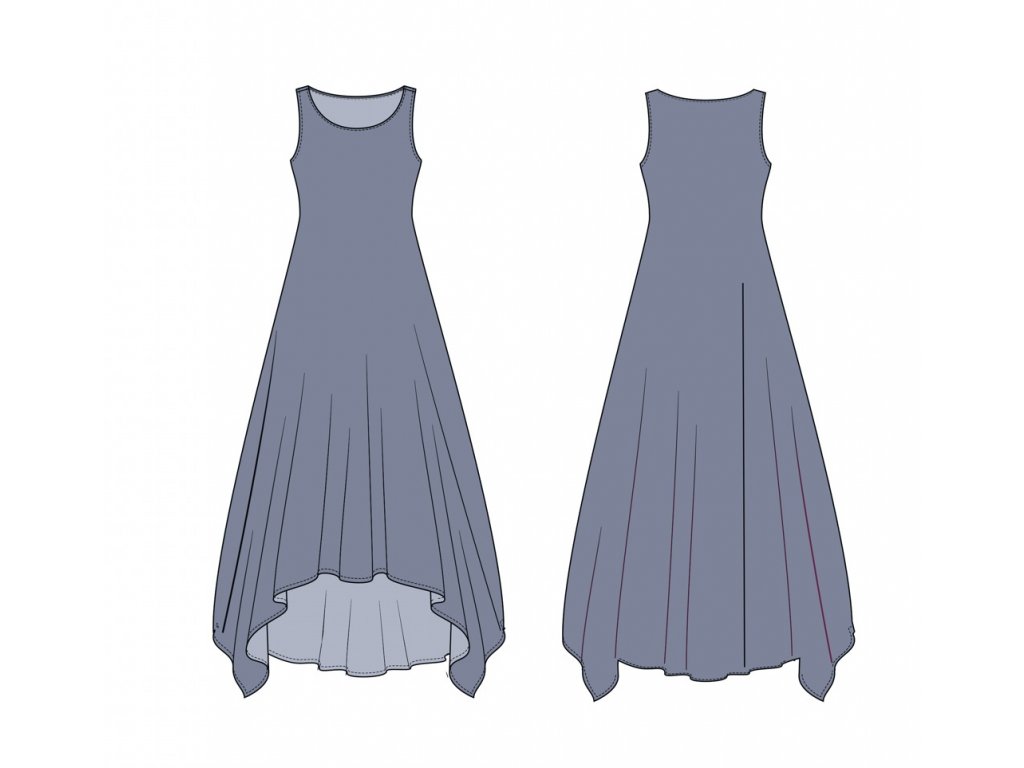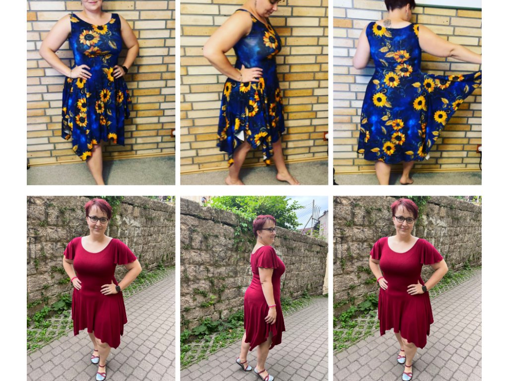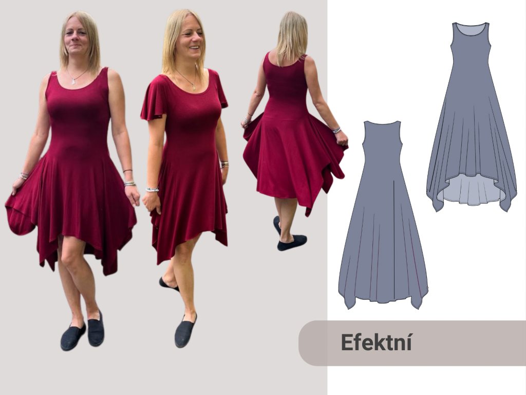 Šaty mají verzi tílkovou nebo verzi s rukávem. Jsou konstruovány pro pružnější úplet. Je nutné dodržet použití úpletu, který je pružný do šířky ale i délky.